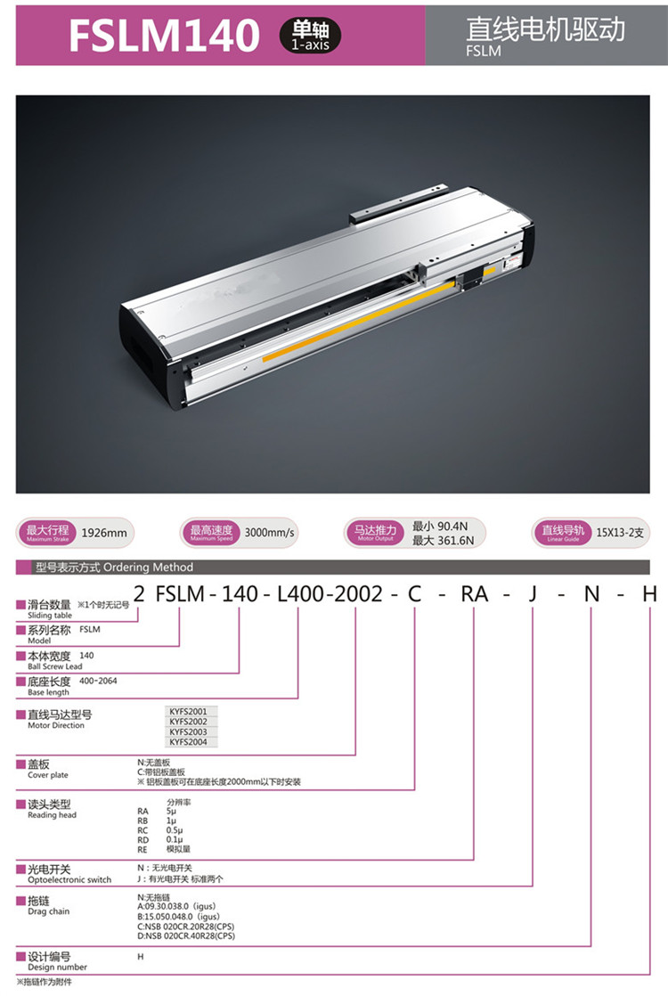 產(chǎn)品名稱:FSLM140 直線電機(jī)模組(開(kāi)放式)