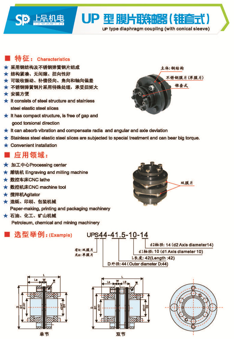 產(chǎn)品名稱:UP型錐套式單膜片聯(lián)軸器