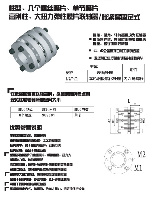 產(chǎn)品名稱:ZP系列膜片脹緊套聯(lián)軸器 單節(jié)八個(gè)螺絲